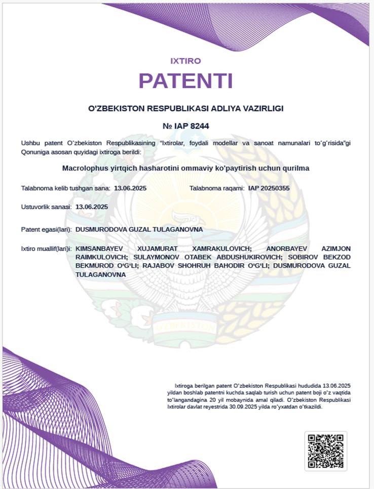 O‘simliklar karantini va himoyasi ilmiy-tadqiqot instituti Andijon mintaqaviy filiali ilmiy ho...
